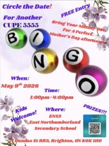 Saturday, May 9, East Northumberland Secondary School – Family Bingo, 1-4pm